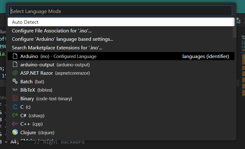 - Microsoft’s extension for arduino only has “arduino output” as an option for language mode.